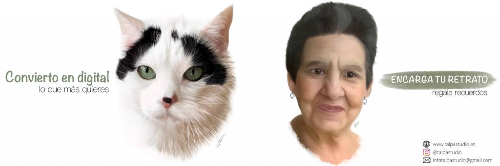 Mi trabajo abarca la ilustración tradicional y digital, con un cariño especial por los retratos realistas. Además, diseño y mantengo páginas web, creo identidades visuales, manuales de marca, etiquetas y todo aquello que ayude a que una idea cobre forma y personalidad propia.